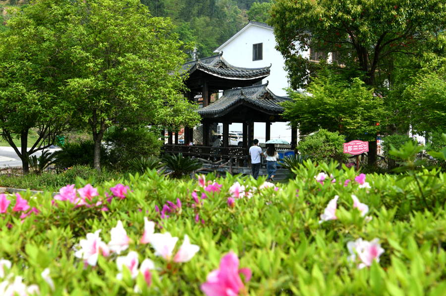 【通讯员 刘建平】4月20日,通城县大坪乡内冲瑶族村鲜花盛开,吸引游客欣赏山水风光,体验瑶乡风情。